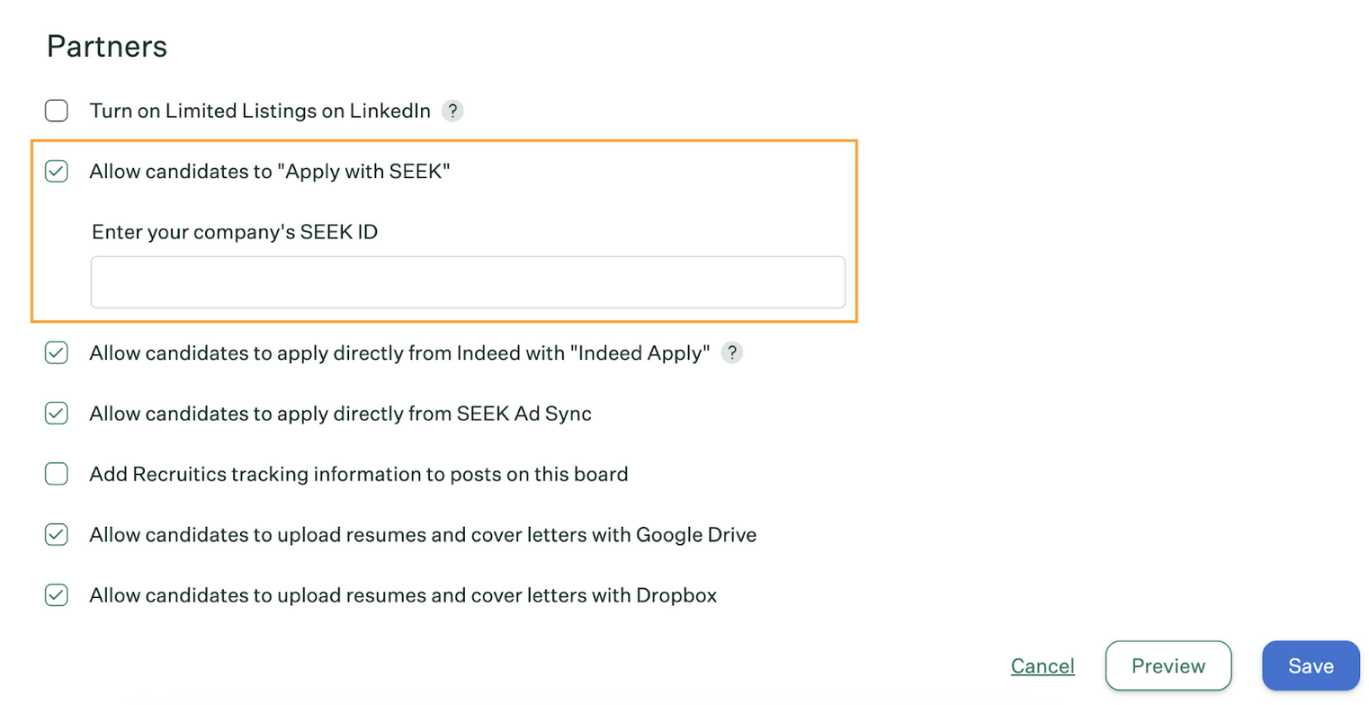 Enable the Greenhouse Recruiting / Apply with SEEK integration