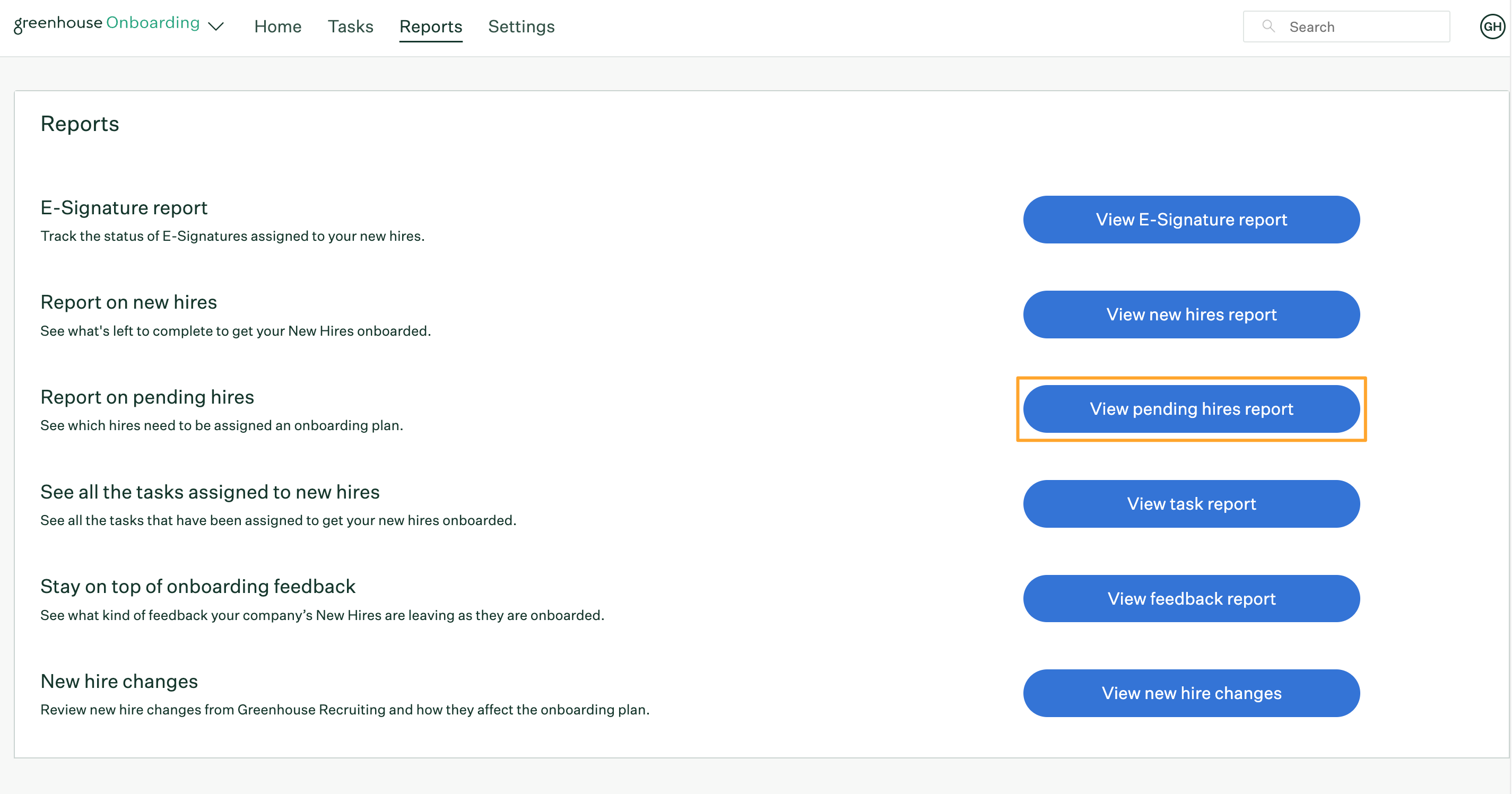 Use the pending hires report in Greenhouse Onboarding to see a complete list of your organization's pending hires and quickly convert them to new hires.