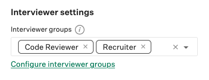 Interviewer tags can also be assigned on a user's profile by choosing an option in the Interviewer groups section. Select a group from the dropdown or click Configure Interviewer groups to add a new group and scroll to the bottom of the section and click Save user details.