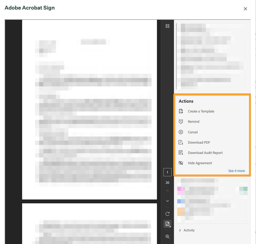 After an agreement is sent, you can click View Details under the Adobe Acrobat Sign section to access additional actions with your agreement.