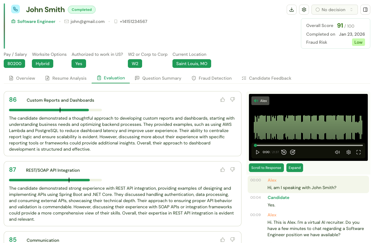 Alex is loved by candidates worldwide because of her flexibility, fairness, and consistency, and is the top rated AI interviewing platform used by companies across the world.
