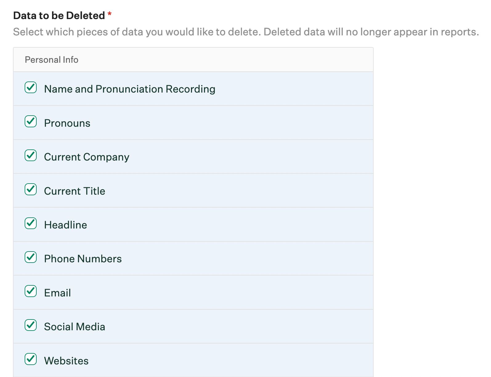Note: Any personal data deleted won't show up in reports.