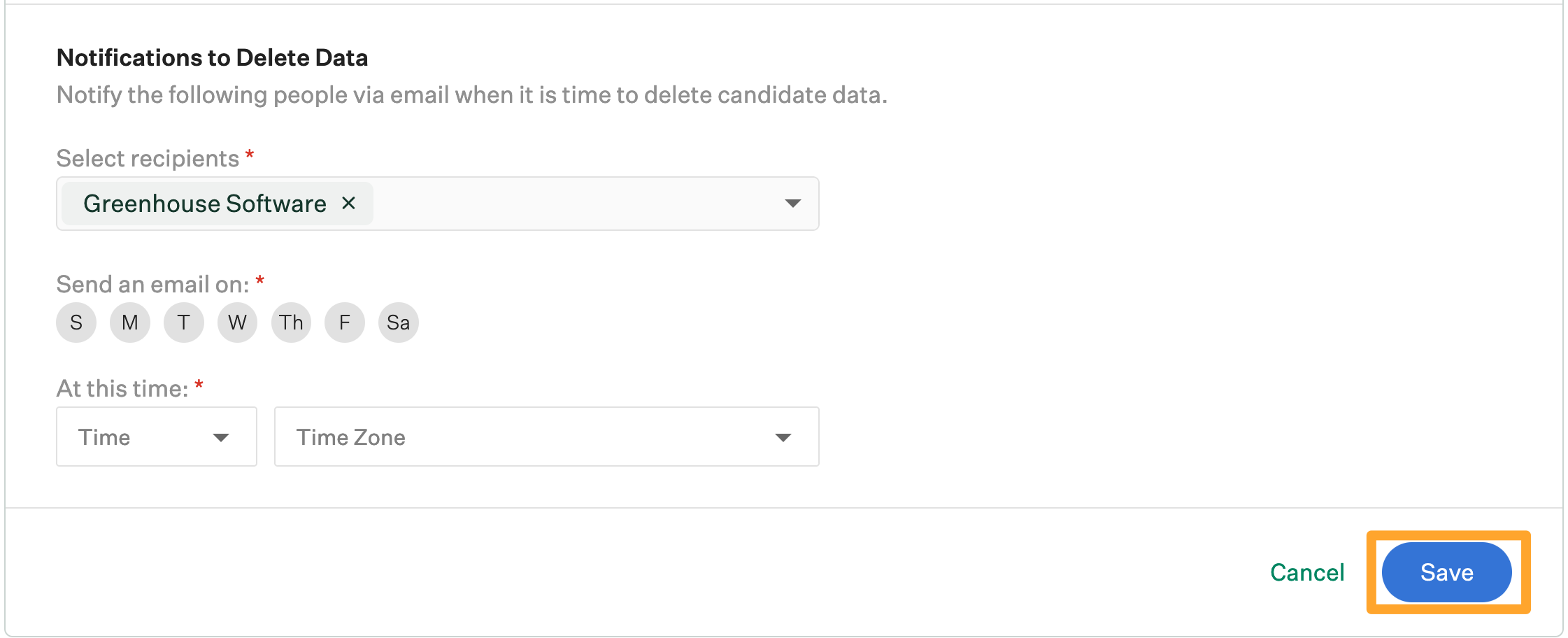 Recipients are notified on the day and time selected that the data retention period for certain rejected candidates is over and the candidates' personal data should be deleted.