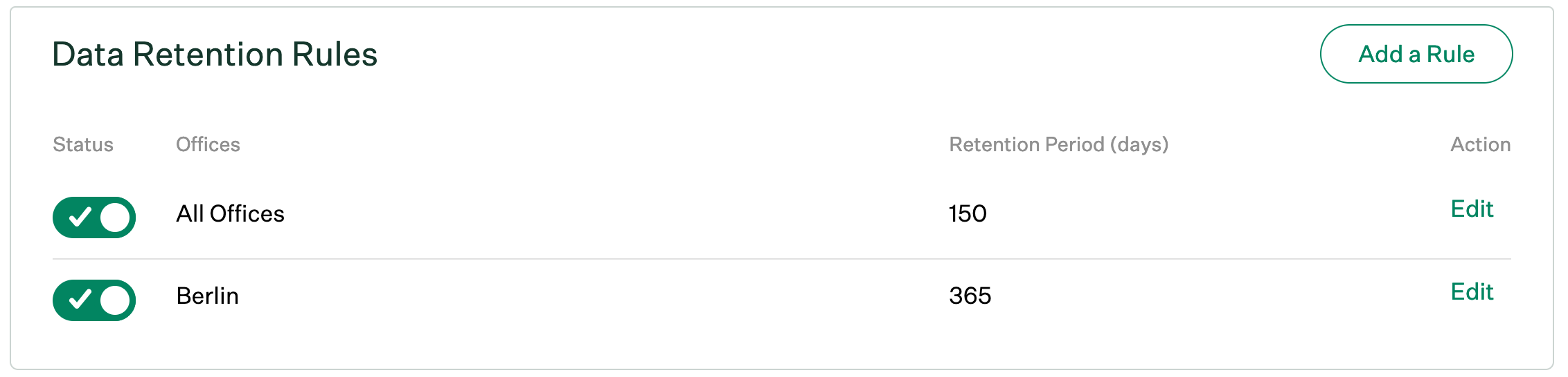 Configure data retention rule offices