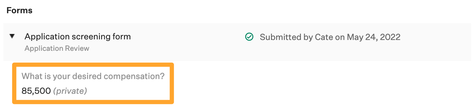 When adding questions on a form, you can mark a question as Private so a candidate's response is only viewable by Greenhouse Recruiting users with the appropriate privacy permissions.