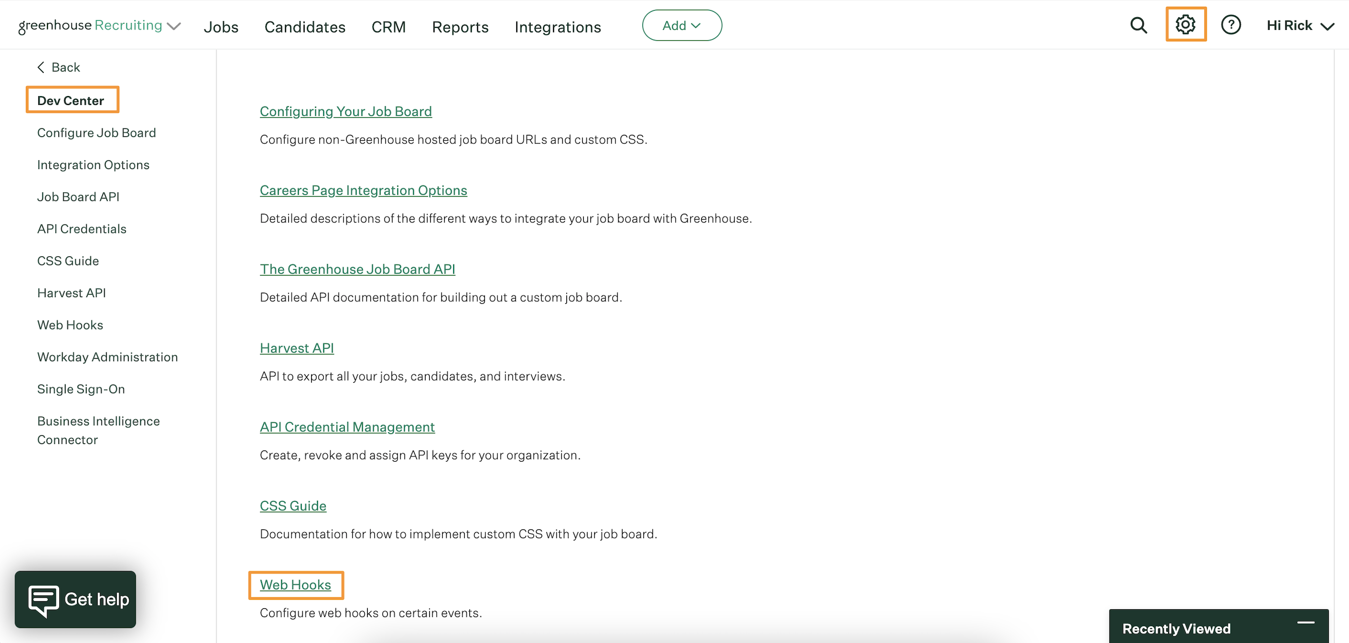 With the Starred credentials copied from the previous step, navigate to Greenhouse Recruiting.