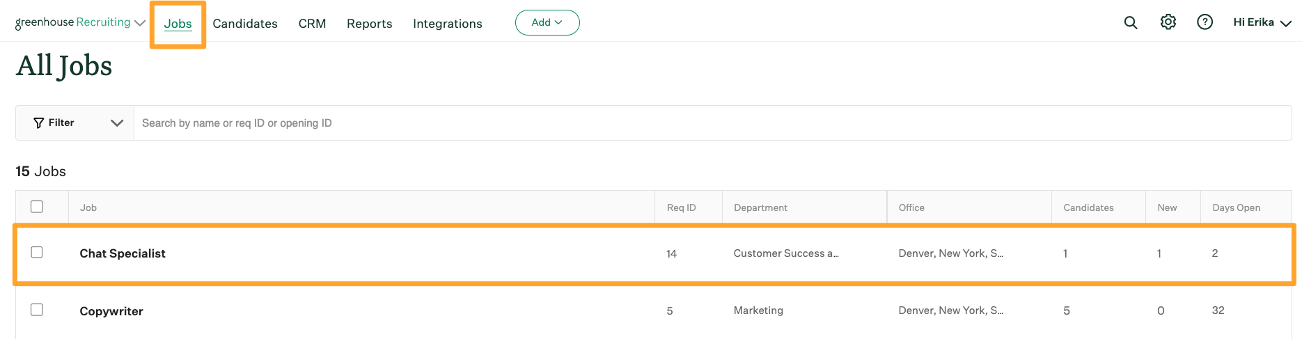 To begin new referral notification setup, click Jobs from the navigation bar and select a job from the subsequent list.