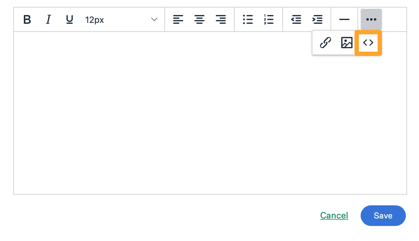 Configure any details for the new email template, then scroll to the Body of the email template and click the Ellipsis icon > then select the Source Code icon <> on the toolbar.