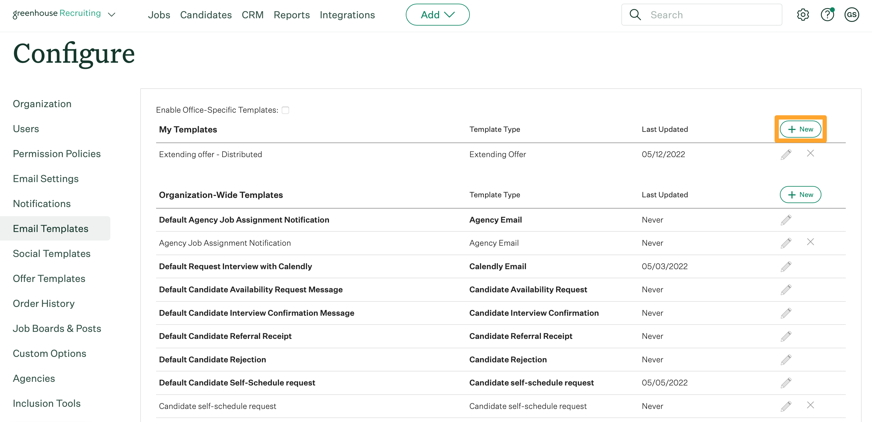 However, even without this direct functionality, Greenhouse Recruiting users can still manually duplicate the contents of an email template. In this article, we'll cover how to manually duplicate an email template that you own.