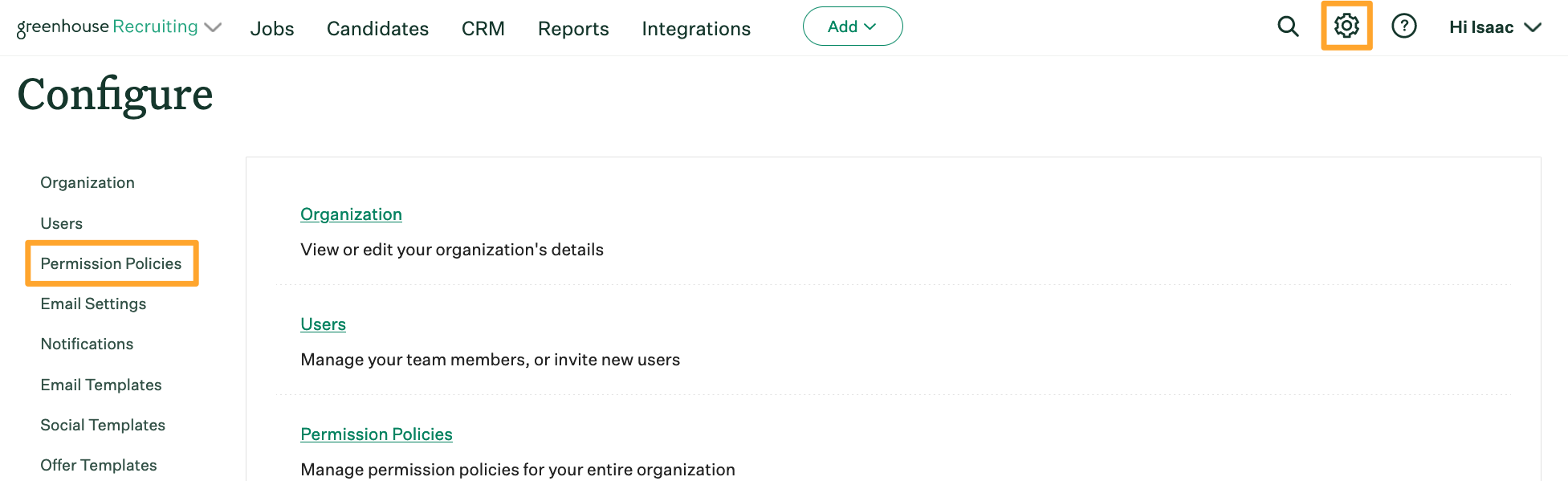 To make opening IDs required for all jobs, click the Configure icon on your navigation bar, then select Permission Policies on the left.