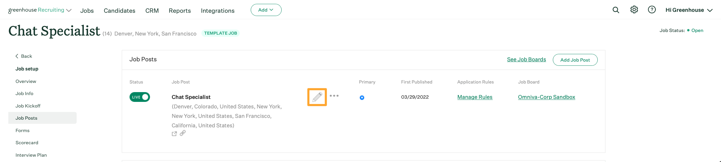 From the Job Dashboard, click Job Setup and then select Job Posts on the left.