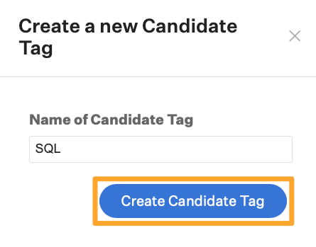 In the Create a new Candidate Tag dialog box, enter a name for your new candidate tag. When you're done, click Create Candidate Tag.