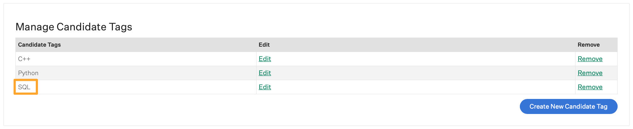 On the Manage Candidate Tags page, click Create New Candidate Tag.