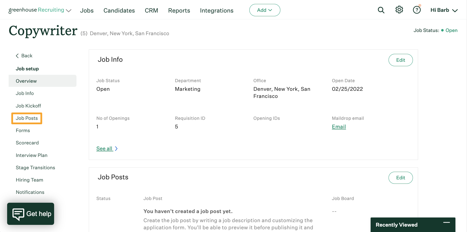 From the Job Dashboard, click the Job Setup tab and navigate to Job Posts on the left-hand panel.
