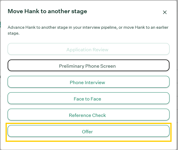 Select Offer. (The background check will be submitted after the offer is created in Greenhouse)