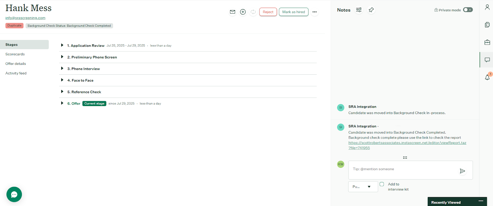 Use the SRA Screening’s integration with Greenhouse Recruiting