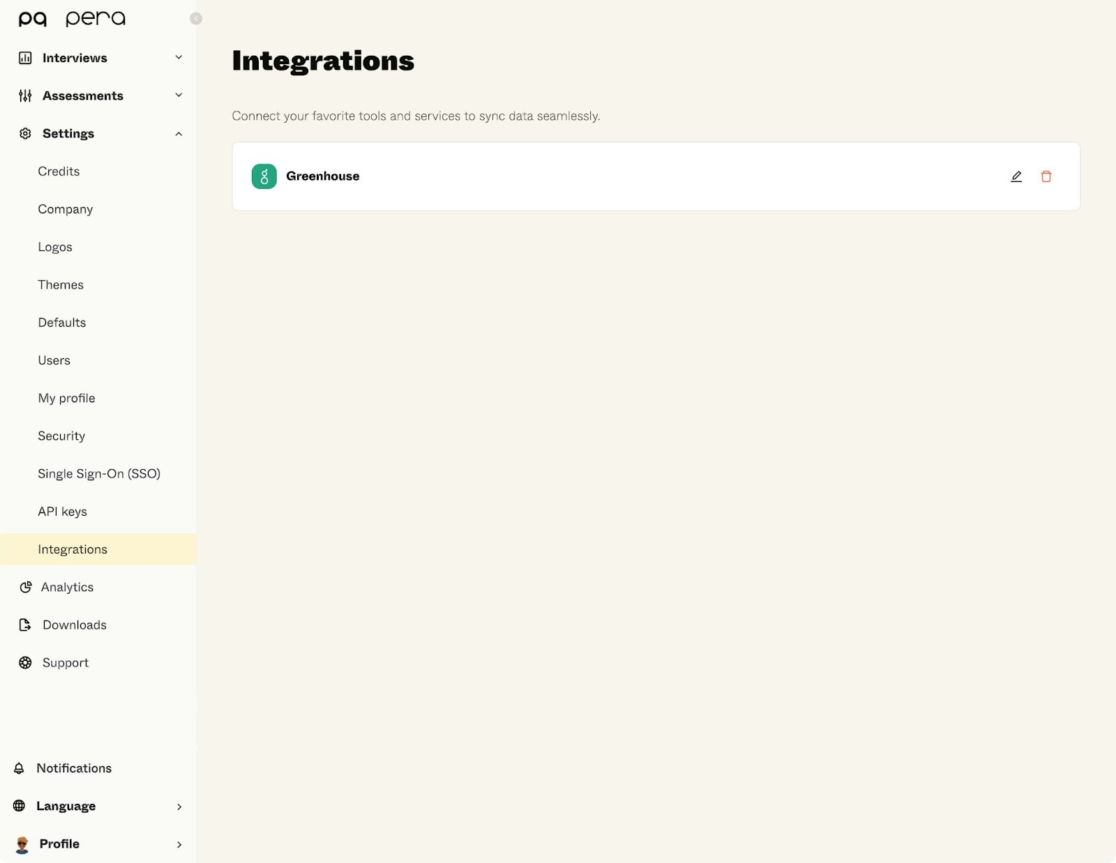 Pera’s integration with Greenhouse Recruiting allows you to seamlessly add Pera’s assessment to a job's interview plan.