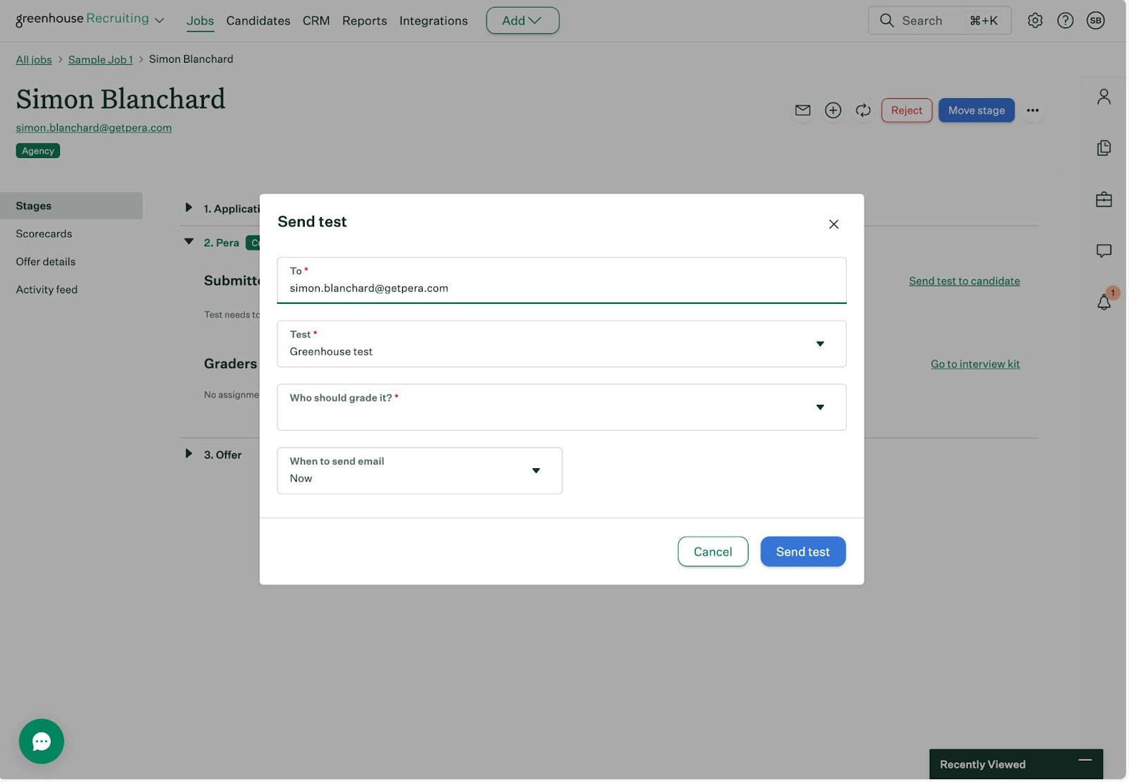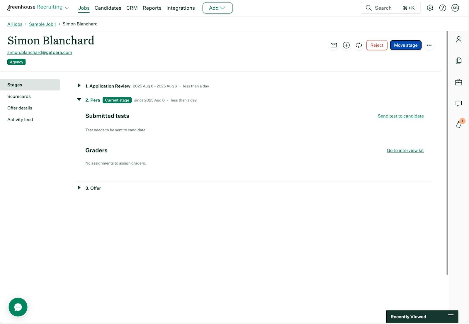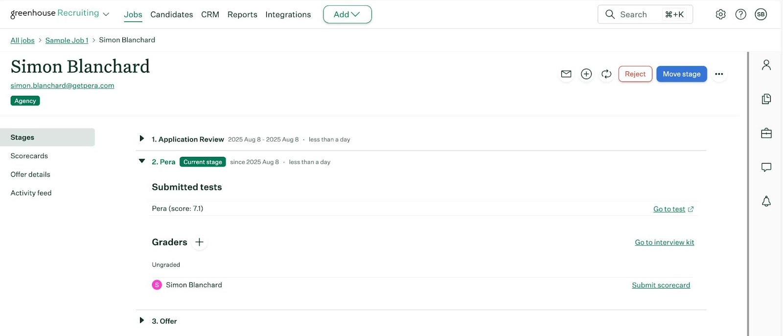 Note: you can also setup a Greenhouse stage transition rule to automate sending the Pera assessment