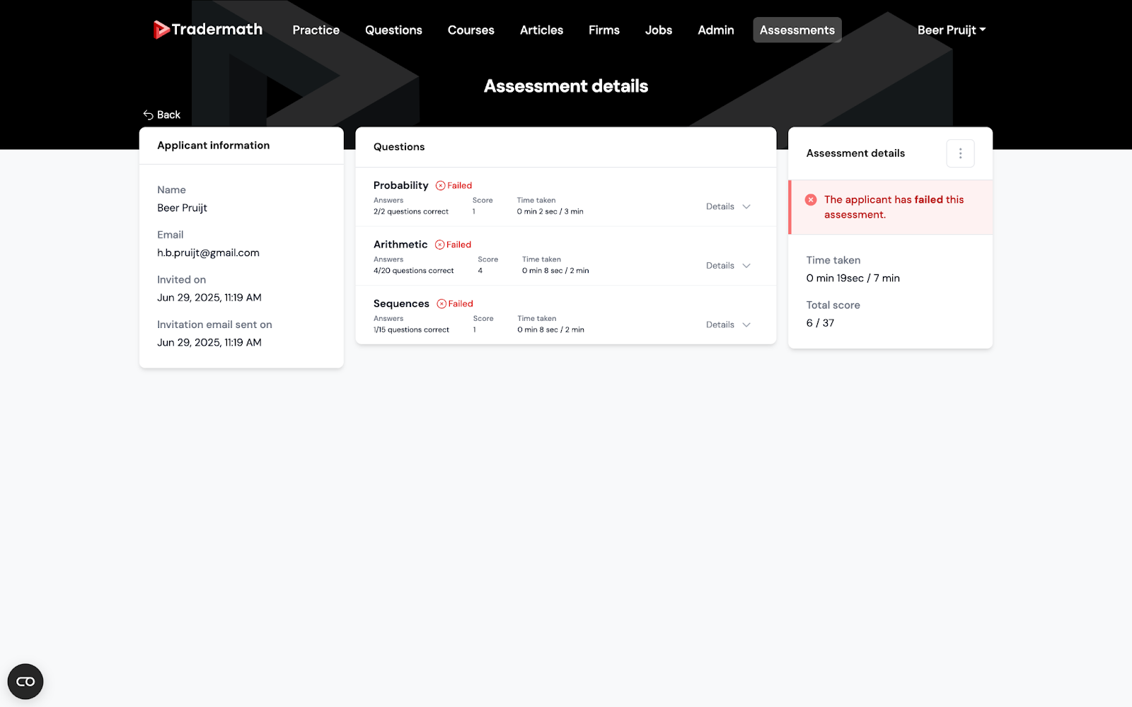 This might prompt you for your credentials and will redirect you to the assessment details page on Tradermath.