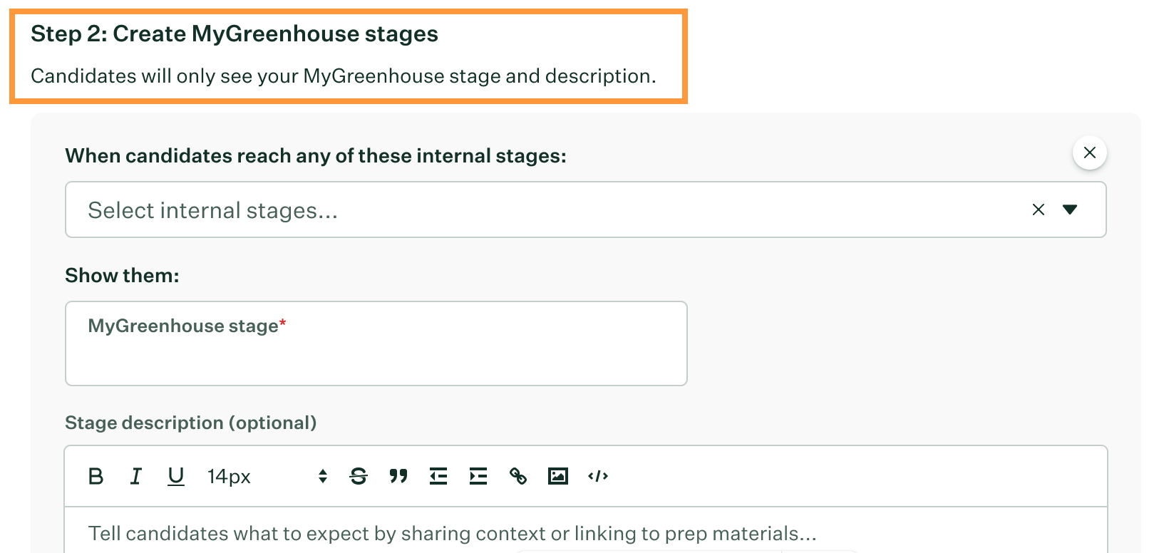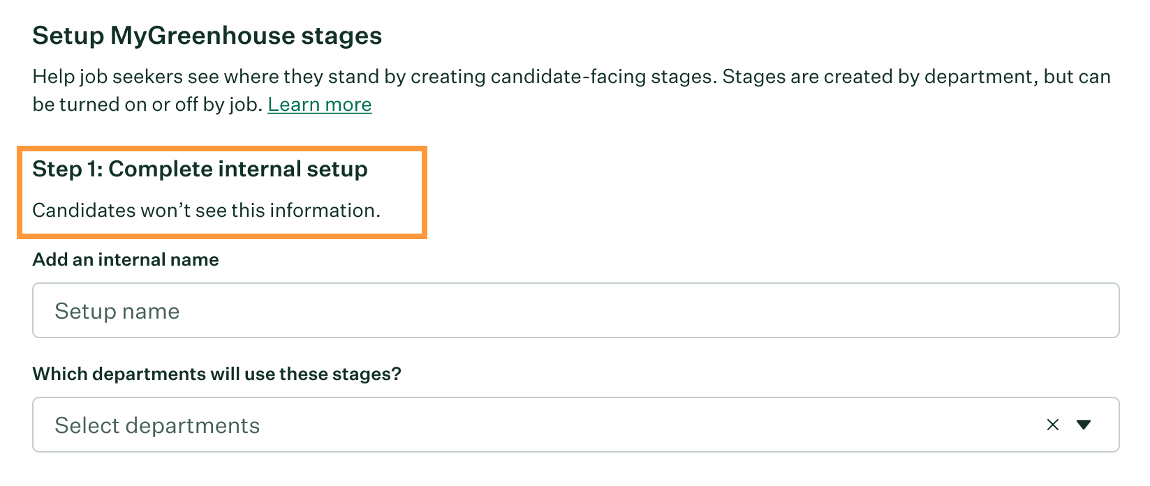 Give your MyGreenhouse stages an internal name to help your team stay organized. This name won't be visible to candidates.