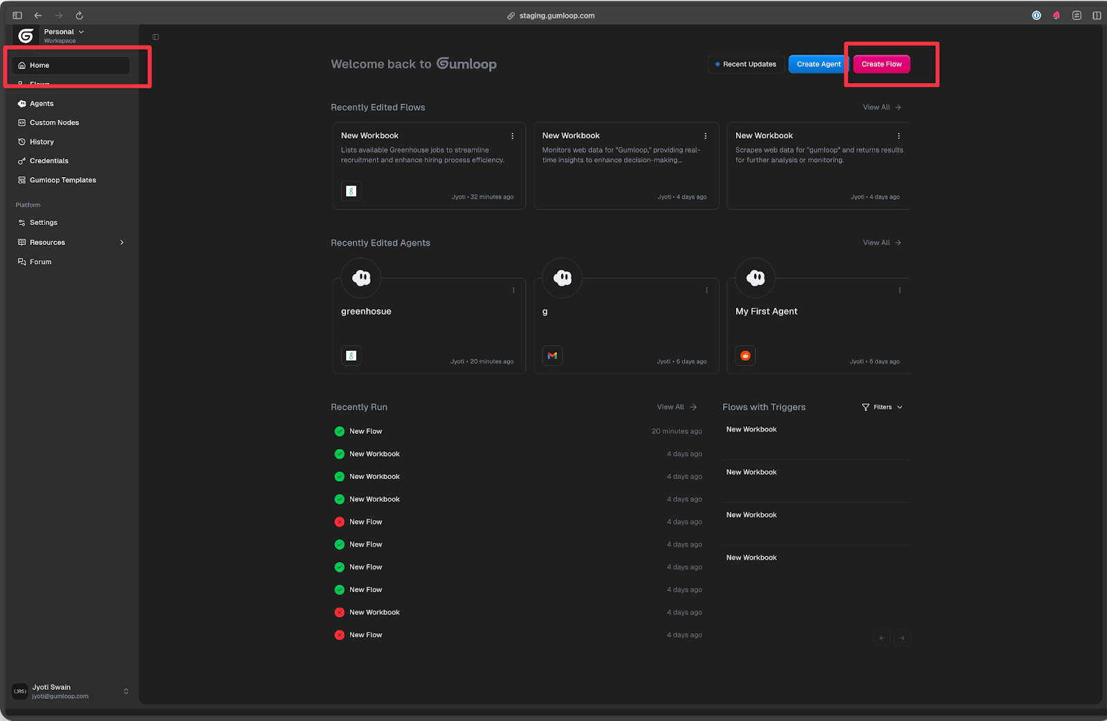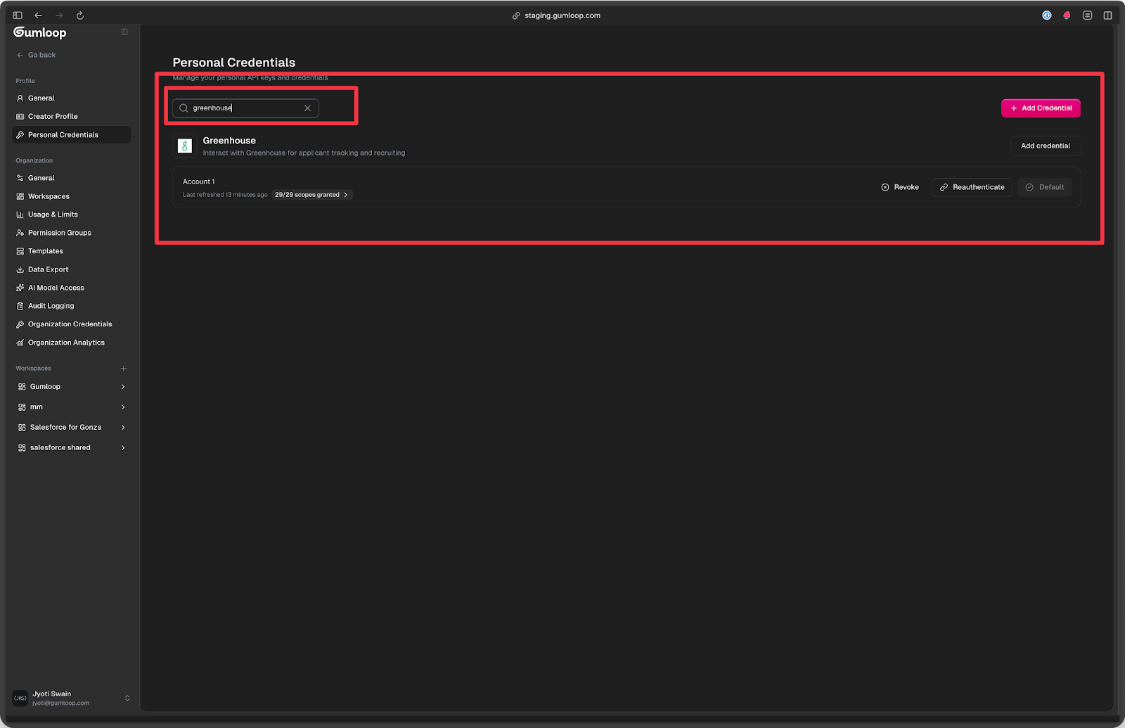 - Once your account is created, navigate to: https://staging.gumloop.com/credentials