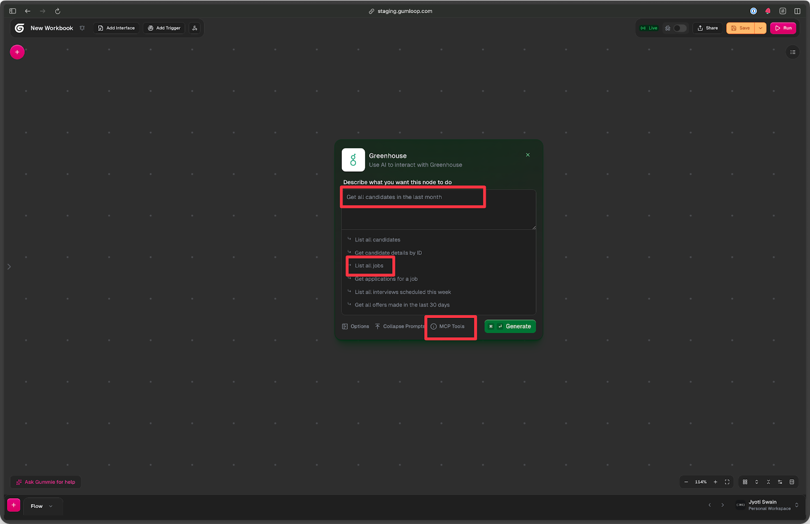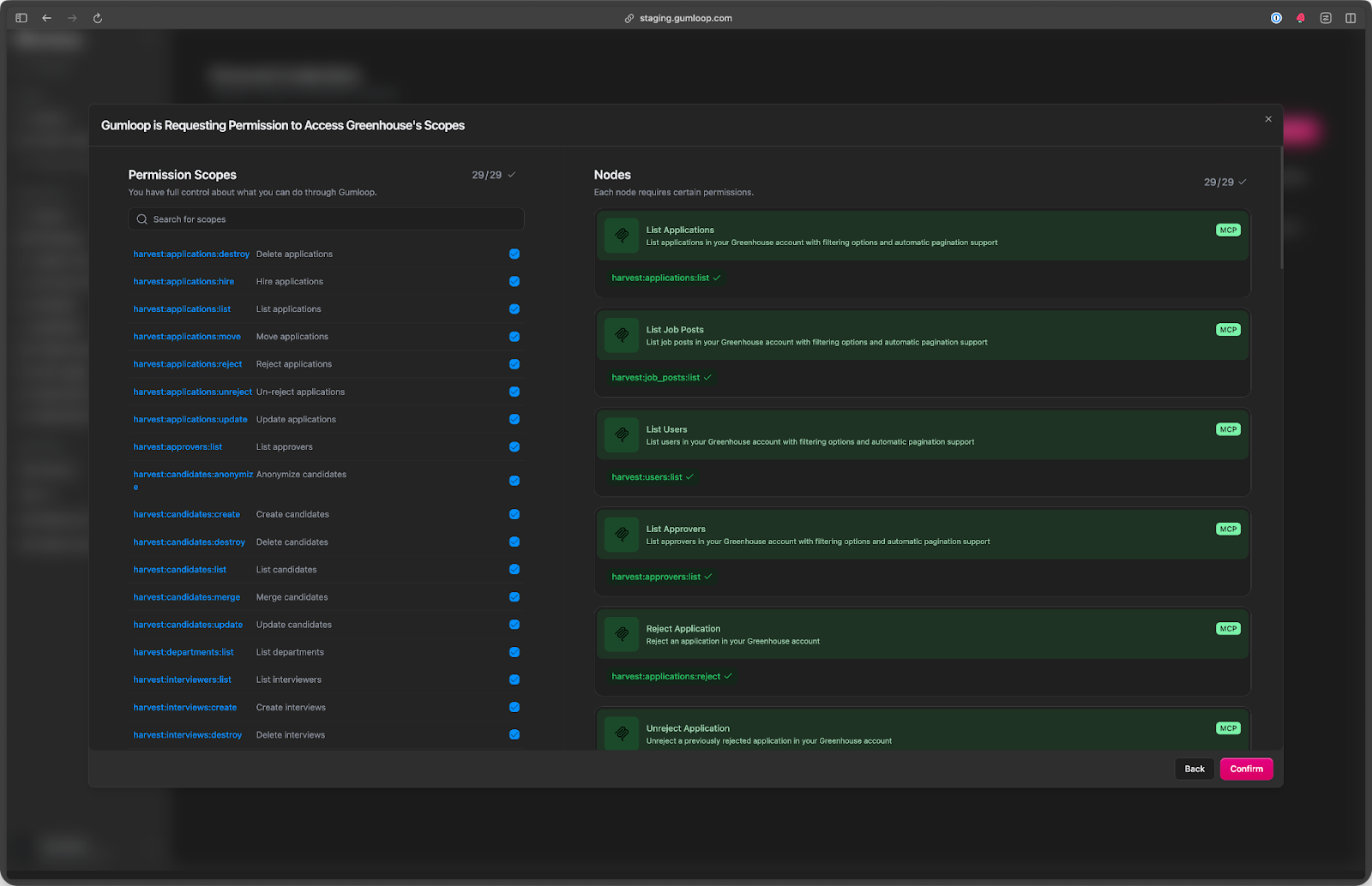 Gumloop’s integration with Greenhouse Recruiting allows users to automate and enhance their recruiting workflows using AI. With this integration, users can: