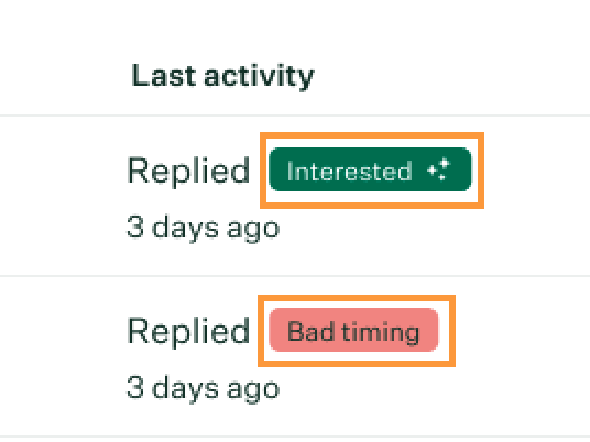 Sentiment tags are an easy way to classify replies so you can focus on interested prospects. While they can be assigned manually, prospect response review uses AI to scan incoming prospect emails and automatically mark prospects as interested based on their response.