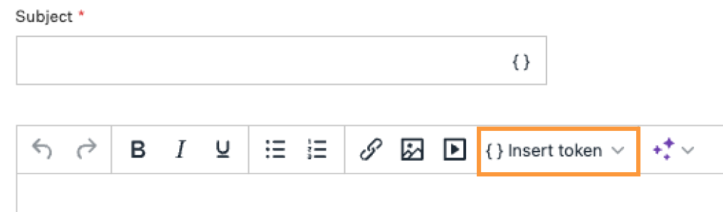 You can add a resume personalization token when you create or edit a step of a nurture campaign. First, scroll down to the editor, then select "Insert token."