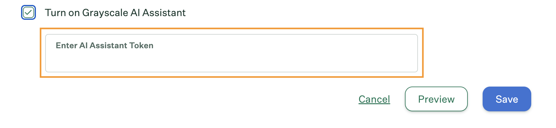 Paste the AI assistant token from Grayscale in the AI assistant token field.