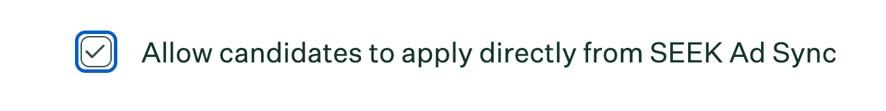 Scroll to Allow candidates to apply directly from “SEEK Ad Sync”, check the box and click Save.