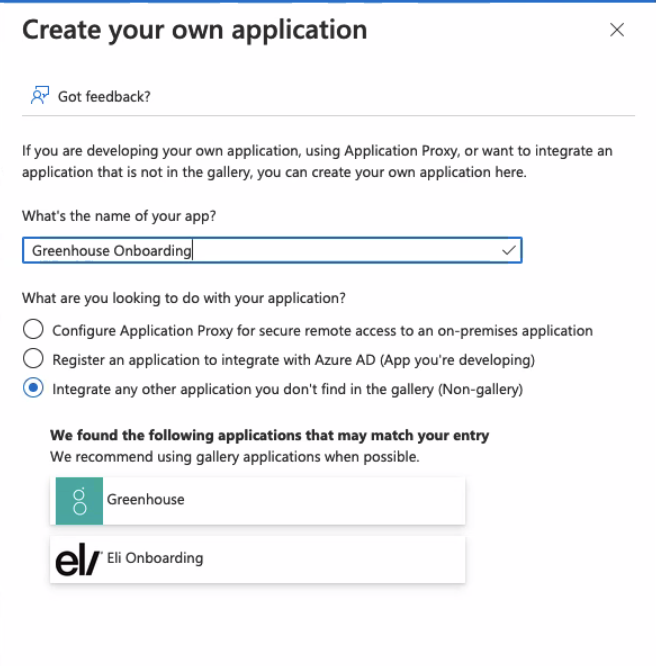 - Enter Greenhouse Onboarding under What's the name of your app?